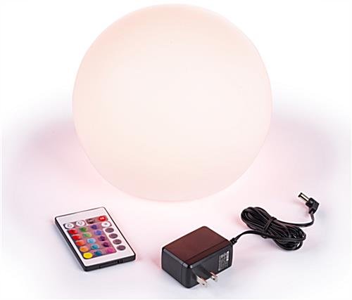 Choose this 8.5” diameter LED ball table light when you want to make events such as weddings, bar mitzvahs, and charity galas extra special. With 16 color change options, these party light accent globes will transform any dull and lackluster space into a fun and welcoming environment for your guests. Scatter these rechargeable LED ball table light spheres and brighten up any dark areas in a new and contemporary way. This unique party lighting offers multiple color options, fade options, 10+ hours of continuous illumination when charged, and includes a remote control. These lightweight rechargeable accent globes are portable, weather-resistant, and suitable for indoor/outdoor use. Consider using this LED ball table light as the ideal centerpiece replacement for candles instead of open flames at your venue site.