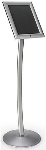 Promote your budding business or time-honored establishment with an outdoor single pedestal sign. Insert an 8.5” x 11” poster into the message board with a quick-release snap frame that locks for safe keeping. Unshielded on the curb, this pedestal sign floor stand maintains a seal with a weatherproof magnetic interior strip. Visibility remains clear as a result of the UV-protective PVC lens. Weather and rust resistant aluminum provide resilience for each message board floor stand. Display posters in a pedestal sign to entice prospective clients right from the curb!