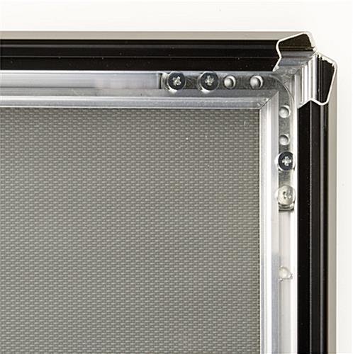 This sign frame, including its base, frame and stand, is approximately 47″ high. The sign frame has a viewable area of 7-3/4″w x 10-1/4″h. Changing your graphics with this sign frame is a breeze! We provide each sign frame with a clear, glare-resistant lens to cover your displays. To change artwork, snap open all four sides of the frame, and slip your advertisement under the clear lens. Lastly, snap the sides shut, and your sign frame stands are ready to be displayed.