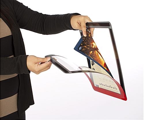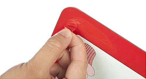 These magnetic 8.5×11 frames, like other advertising holders, have two sides to show your art on. Each model is designed to attach to a window or door. These 8.5×11 frames for standard size paper will actually sticks to most flat surfaces. Unlike other signs, these models are perfect for any non-pourous surfaces. The 8.5×11 frames are thin and lightweight, making them perfect for putting a poster onto a window. The magnetic enclosure will hold advertising securely, yet enable a picture to be added quickly when needed. Made from a lightweight and flexible plastic, these 8.5×11 frames that are designed for glass door mount use, are sure to protect a paper from wear and tear. These features make this item a great choice when art or advertising posters need to be displayed in heavy traffic areas in a store or business.