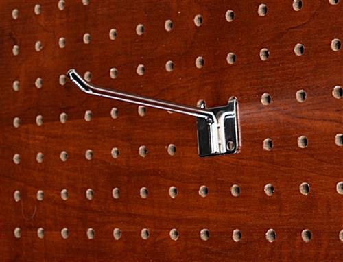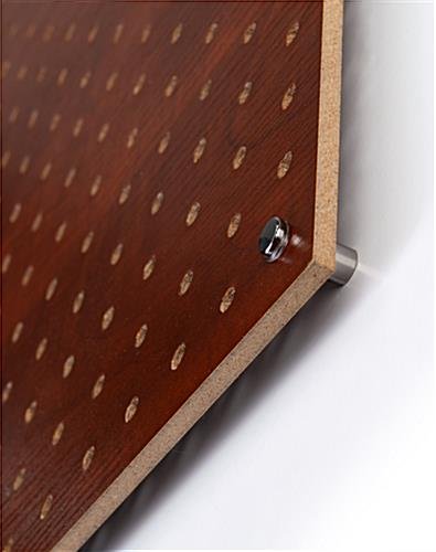 This pegboard wall panel set includes (2) 8-foot by 4-foot pieces and all required mounting hardware. Round holes accommodate standard accessories such as shelves, hooks, and hangers designed for 1/4″ material thickness (sold separately). The pegboard wall panel serves as a wonderful space-saving solution in a home or retail merchandising environment. Purchase shelves, hooks, and hangers (sold separately) to create a unique display in a commercial setting or an organizer fixture at your residence. Complete with all mounting hardware included, this peg display set features hassle-free assembly. Enhance your retail merchandising displays with the addition of this pegboard wall panel with round holes.
