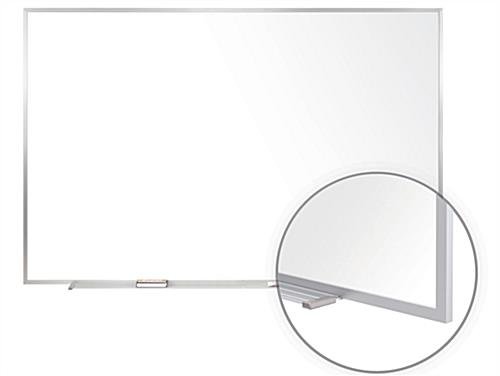 The white magnetic dry erase board, dry erase board is porcelain on steel, a stain, dent, and scratch-resistant material. The magnetic surface of this whiteboard makes it the perfect dry-erase board to attach posters or neodymium magnets. These dry-erase boards provide a surface that maximizes space, making them a great tool for school or professional environments.
