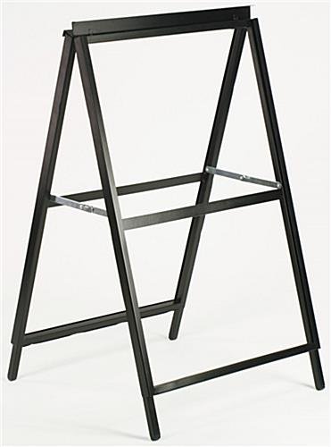 This metal A-frame sign with custom logo is the perfect sandwich board display for your storefront, restaurant or bar. Two included 23.5” x 35.5” printed coroplast inserts are perfect for sharing brand messages, drink items, or menu specials outdoors. The A-frame sign with custom logo folds flat for ease of storage when not in use as a sidewalk display. Printed sandwich boards are the perfect way to advertise outdoors and grab the attention of passersby. A durable steel construction easily withstands most weather conditions. Add this A-frame sign with logo to your sidewalk to increase walk-in traffic!
