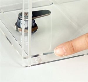 Locking donation boxes are ideal for churches and other organizations to collect alms. Coin canisters provide a safe and secure way to properly handle tip money or other contents. Each donation canister also includes a clear header to accommodate a 5″ x 7″ graphic or message. Locking donation boxes like these fundraising displays, feature a locking mechanism at the bottom to prevent content tampering. A pre-drilled coil hole on its left end corner, if used with an additional coil or cable you can keep the container in place and out of the hands of pranksters!