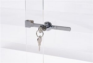 Jewelry Display Case – These display cases feature sliding doors that lock with the included ratcheting style lock. Jewelry display cases can be used with the locking doors facing either the clerk or the customers. Case measures 16″h x 22″w x 8.5″d. The three shelves are 3-5/8″ apart.