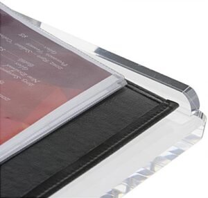 This silver economy lectern with poster frame, made of acrylic and aluminum, is designed for durability and value. With a floor standing base and post, anodized for beauty and longevity, and thick acrylic reading surface, this stand will last through years of presentations and performances. The clear and silver economy lectern includes a single-sided 22″ x 28″ sign holder with a snap-open design to easily change graphics as needed. Each stand also comes with a non-glare lens to protect the graphic when in use. This economy lectern offers versatility, as the single-sided snap-open sign can promote the speaker during a presentation, a musician during a performance, or a restaurant with a menu on the reading surface for waiting guests to peruse. Try this floor standing podium with its easy to use sign holder if you need an affordable and multipurpose stand for your business or promotion.