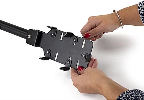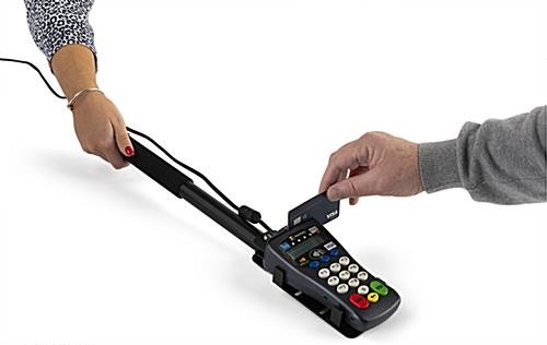 Our drive through extension arm has five adjustable prongs along the inside paddle plate, making it suitable for most credit card readers. As a result, this keypad extender eliminates the hassle of purchasing separate pieces or attachments to get the right fit — simply adjust the clamps to best fit your device. Our portable drive through extension arm is excellent for maintaining distance at retail stores and banks or reaching across large gaps at the payment window of fast-food restaurants. This POS terminal payment paddle can serve pin pad devices with a front, side, and top swipe, making it convenient for almost all customers to use. The pole is lightweight and constructed of aluminum and steel with a padded handle for ease of use and comfort. This portable credit card reader mount ships fully assembled and ready to use. Use our no-contact adjustable drive through extension arm to minimize the spread of germs while interacting with customers or just get those extra few feet needed without having to overreach.