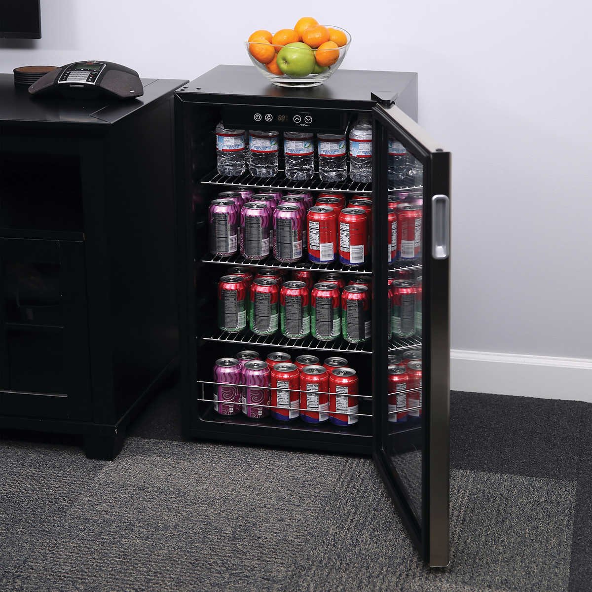 - Quiet, low-energy consumption refrigerator/cooler is perfect in any space.