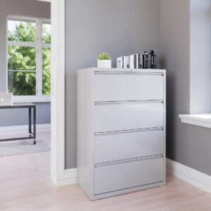 Alera Lateral 4-Drawer File Cabinet, Letter/Legal, 36″W x 18.63″D x 52.5″H, Light Gray