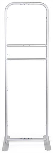 This banner stand sanitizer dispenser frame is constructed of silver aluminum and has numbered poles with push-pins for a quick and stress-free assembly. Our stand is lightweight and can easily be transported from one event to the next. This banner stand sanitizer dispenser frame looks best with HSBSDSGCP, great for gyms, lobbies, grocery stores, and more. Pair with our HSCLTRDISP clip-on gel dispenser to help protect patrons from the spread of germs.