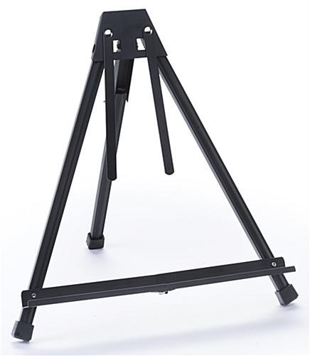 Whether it’s for your home, business, or studio, this aluminum table easel is a sturdy and versatile option for your display needs. Featuring a tripod design, this product has adjustable stabilizing arms to hold larger items up to 19.75” x 19.75”. Though it’s an art supplies staple, this black table easel is often used in classrooms, book stores, and even in homes to display books or framed photos. With its foldable design and carrying bag, this product can be easily transported and stored. Made with sturdy black metal and non-skid feet, this table easel can hold items up to approximately 4.5 pounds. This display piece is great for those looking to expand their art supplies inventory with a hassle-free option.