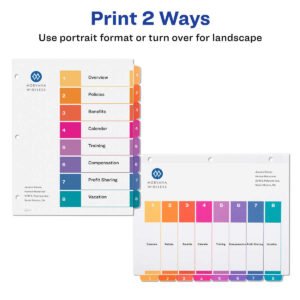 - Double-sided section titles page and tab dividers can be used in portrait or landscape orientation