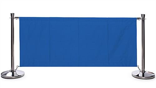 This metal line formation system, blue cafe banner for retail and restaurant use, is used in a range of venues to create systematic arrangements for guests to walk through. Airport security, banks, bistros, casinos, museums, quick service restaurants, retail establishments and tradeshow exhibitors have all purchased these barriers in order to indicate where the entrance of a line is located. This durable barricade, cafe banner that is used as a temporary barrier, can deter guests from cutting in line or changing the arrangement of these metal posts. When situated in a straight line, this configuration measures 350-1/2″ or 25 feet 5-1/2 inches long and can be positioned in any realistic design to direct the flow of traffic or deter guests from entering a restricted area, touching valuable display items or getting too close to priceless artifacts! Each individual banner measures 72.5” x 31”.
