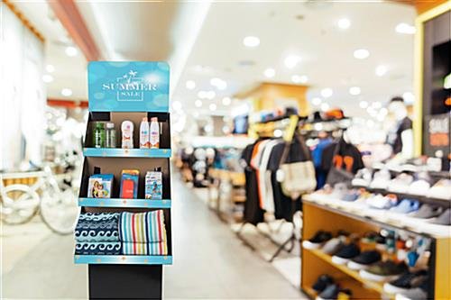 Create a personalized POS unit with this 3 shelf custom printed cardboard floor stand. Each fixture has a lightweight design and reinforced corrugated build to place at any location in your store to promote merchandise. This point of purchase custom printed cardboard floor stand includes full-color UV printed graphics stickers that are placed on the header and tiers to draw attention. Display sunscreen and children’s floaties beneath a summertime logo or drawing books with colorful imagery. This marketing dump bin is the ideal POS retail fixture for point of purchase locations. Use this custom printed cardboard floor stand to boost sales by combining graphics with product placement displays.