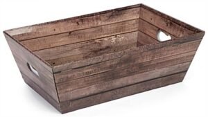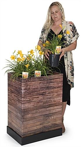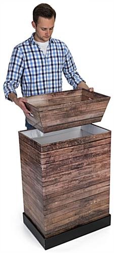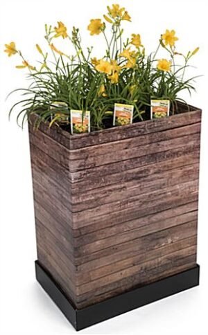 Use this faux wood cardboard floor display to show off new products at point of purchase locations. The 8” removable tray allows you the flexibility to fill it in the back room or use alone as a countertop dump bin. This collapsible wood cardboard floor display is pre-printed using UV technology and features a glossy graphic that gives a rustic, shabby chic appearance. Place flower pots, toys, or dog treats in the removable tray for seasonal promotions in point of purchase locations to boost sales. This dump bin is made from reinforced corrugated paper for a lightweight and durable retail fixture. Encourage customers to buy those last minute products and increase sales with this cardboard floor display.