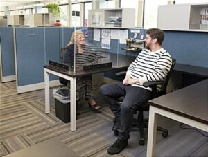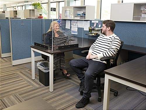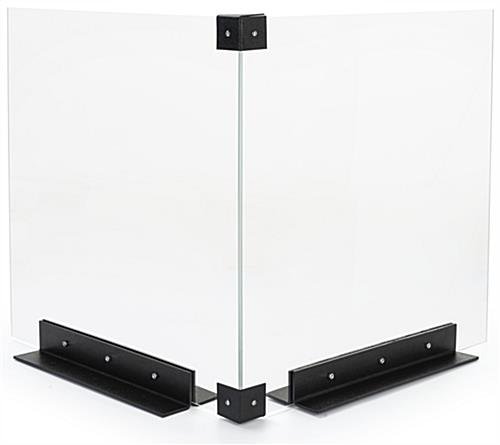This corner countertop sneeze guard has a heavy-duty design and is made of 0.1875″ thick polycarbonate for a long-lasting and durable design. You can either have the sanitary shield be portable or hard mount it to your tabletop surface with any basic wood screw for a more permanent installation. This polycarbonate corner countertop sneeze guard is a perfect way to virus-proof your retail store, bar, reception desk, fast food restaurant, hotel check-in counter, and more. The black hinges on these heavy-duty sanitary shields have pre-drilled holes to mount your unit with ease. The intersecting edged design allows you to protect yourself more by creating a barrier on more than one side, making this an excellent option for any organization looking to virus-proof their space to keep employees safe during daily interactions. This durable corner sneeze guard will bring your patrons and employees a sense of ease as they navigate your commercial space.