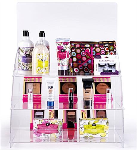 3 Tiered Clear Countertop Merchandising Stand with Ample Shelf Display