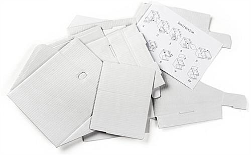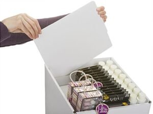 This tabletop corrugated display is the ideal trade show or counter presentation to have for promoting a variety of products. Featuring a 2 tier design, the unit is great for placing small items in to sell near the register for those impulse purchases. The freestanding corrugated display has a removable header which you can use as a presentation of additional information or pricing on products. Standing at a height of only 20” and consuming a width of 10”, this is the perfect counter unit because very little space is used. The corrugated display with the cardboard construction is breeze to put together with the provided instructions. Bring the unit with you to the next trade show to showcase your merchandise and increase publicity!