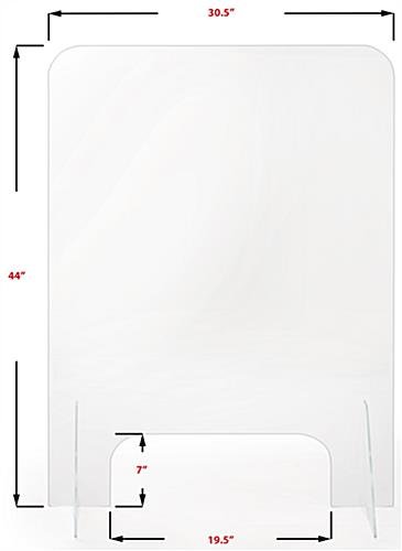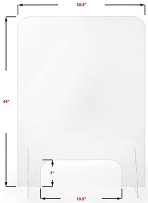 This clear acrylic splash guard is great for added protection in your retail shop, convenient store, or food market because it enforces social distancing between your employees and customers. The modular plexiglass sneeze shield design is easy to set up and can be moved from a desk to a countertop with ease. This clear acrylic splash guard is convenient for checkout counters, receptionist desks, bank teller windows, and more with a small slot for transactions and payments. Lower your risk of virus spread and keep your staff healthy with this convenient protective tabletop sneeze shield!