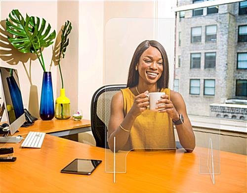 This polycarbonate splash shield has overall dimensions of 30.5″ W x 44″ H making it the perfect size for reception desks, bank teller windows, checkout counters, or cashier stations. The one-panel protective panel has a countertop placement style with a convenient 19.5″ W x 7″ H transaction slot, allowing you to create separation during your daily business transaction when physical distance may not be an option. This impact-resistant polycarbonate splash shield has a convenient knockdown design, allowing you to break it down with ease and travel to events, trade shows, or corporate meetings with it. Our thermoplastic protective panel is an easy way to create physical distance between your employees and patrons and lower the spread of viruses. The impact-resistant material used for this sneeze guard makes for a durable and long-lasting design. This countertop polycarbonate splash shield is an easy way to enhance the health and safety protocols in your office space, educational environment, and retail store to bring a sense of ease to those navigating through your facility.
