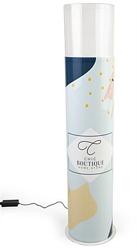 This custom graphic for DCAROUND display case creates a highly-visible branding opportunity for your business. When applied, your full color, UV-printed design spans the entire length of the illuminated tower, underscored by beautiful LED lighting. Use this custom graphic for DCAROUND display case display case to create a high-end retail showcase that will get customers talking.