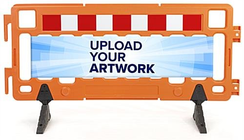 Our custom printed crowd safety signage is the ideal way to brand your 76” x 40” FGPFBLARGE plastic pedestrian barrier. This double-sided 61” x 17” mesh vinyl banner easily attaches with a hook & loop Velcro method and is ideal for long-term and outdoor usage. This tear-resistant crowd safety signage offers vibrant full-body, full-color solvent printing, and allows you to display two separate graphic designs on one barrier. Take advantage of a unique advertising and messaging opportunity when you add this banner to your 76” x 40” FGPFBLARGE plastic pedestrian barrier through our easy to upload artwork process.
