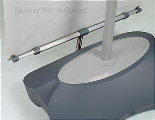If you already own display banners, but need a new way to showcase them, this water-base banner stand is a top choice. Instead of hanging your banners on the wall or from the ceiling, use this banner stand for a cleaner presentation! For this particular display stand, your banners should be anywhere between 19″ to 27″ wide to 43″ to 82″ long and should contain grommets at the 4 corners. Your banners hook to the horizontal bars through the grommets and remain taut upon adjusting the bars and middle pole. High elastic springs connect the bottom bars to the plastic base, lessening the impact of strong winds.
