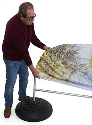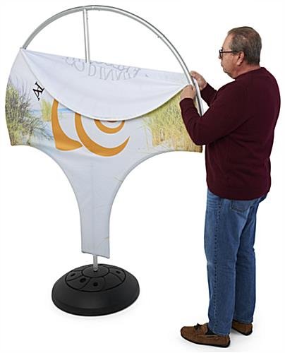 This fabric tube crowd barrier system is modular mushroom-style shape signage, and a banner stand with custom printed designs for advertising at outdoor restaurants, festivals, markets, and community functions. The base provides one center prong and four cavities to create custom configurations for the desired on-site location easily. Our modular tube crowd barrier system features polyester material with dye sublimation to personalize your banner for advertising at your next event or company function. The custom printed signage can also withstand outdoor conditions, providing a long-lasting unit. The snap-tube assembly is simple to put together with minimal tools required. One self-supporting plastic base is included in this set and can be filled with water or sand to provide a sturdy base for events with high traffic. This advertising tube crowd barrier system is a marketing tool for outdoor restaurants, music venues, and city marathons.