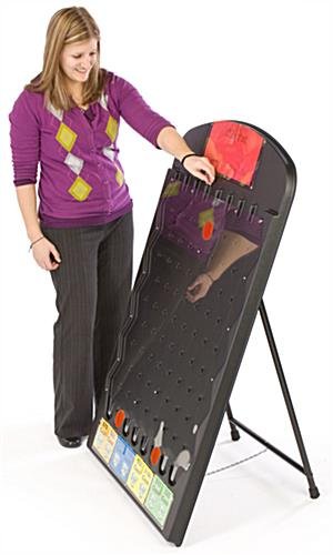 This prize drop game board is constructed from black ABS plastic and includes a powder-coated, steel stand to display on any floor. The gaming fixture measures 48″ high, therefore making it viewable from far away. The prize drop game board is sure to gather a group of hopeful participants and spectators! This carnival display is also equipped with templates to help custom design each prize slot and your header. This gives users freedom to personalize every presentation! This prize drop gaming display adds entertainment to any situation!