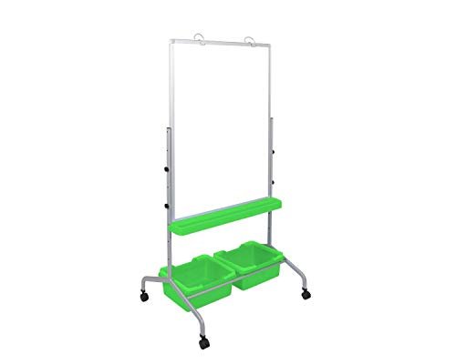 - Two durable plastic open bins hold supplies while handles allow for easy toting. Chart hooks display easel paper pads, pocket charts and posters.