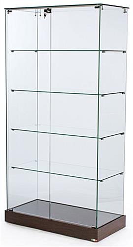 These 4″ base frameless tower displays are a standard fixture for many retail stores. The cases are full-height, offering up to five levels of space to showcase items! The frameless tower displays that are 35-1/4″ wide, also known as glass cabinets, hold various goods, from trophies, awards, plaques or sports memorabilia to glassware, fine china, electronics, handbags, cosmetics and more! These showcases are part of the EuroVū Simplice line of cases, offering exceptional European styling and construction at an affordable price. The frameless tower displays that are 17-3/8″ deep coordinate with similar styles from this series, allowing retailers to create a cohesive store configuration. In addition to this size and style, there are also glass counters, cash wraps, countertop cases and more!