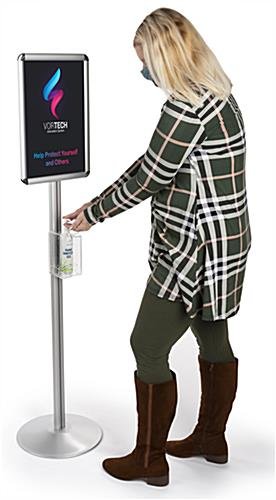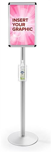 If you’re concerned with personal hygiene in the workplace, then this floor standing hand sanitizer holder is the perfect product for you! Each unit includes an acrylic holder for 8 – 12 oz. Purell® bottles, which are sold separately, and a snap frame suitable for 11” x 17” graphics. Provide an instant antiseptic station with this multi-purpose advertising sanitizer holder. Though the disinfectant is sold separately, the acrylic unit adjusts to accommodate most standard sized Purell® pump bottles. Quickly and easily change your graphics with this aluminum snap frame, and defend against daily wear and tear with the included protective plastic lens. A drip tray, attached to the base of the sanitizer holder, helps maintain a clean environment while patrons practice healthy hygiene with instant sterilizing. Utilize this multifunctional sign holder in your lobby, waiting area, or office to showcase announcements while also offering disinfectant to clients and employees alike.