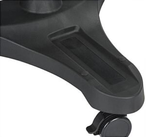 This mobile laptop workstation is ergonomically designed for your comfort with ease of use features and functions while conducting business. With an ABS plastic top surface on a durable polypropylene base, this computer cart is ideal for notebooks and small devices. The gas spring pole on the adjustable laptop workstation can be modified from 29.9” to a maximum height of 40.2”, providing comfort while used sitting or standing. A retractable mouse tray and a cup holder, along with a lower shelf for compact printers, are some of the unique features on the computer cart. Three rolling casters allow for easy mobility and lock in place for a stable surface while using notebooks and tablets. A power strip can be conveniently attached to the base power bar tray with included adhesive hook and loop strips. This laptop workstation adapts to your needs for comfortable operation, making this perfect for any business.