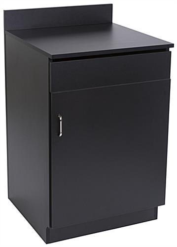 Hostess Station with Enclosed Cabinet & Pull-Out Drawer, Adjustable Shelf – Black