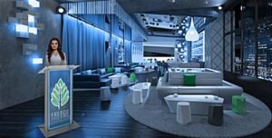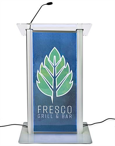 Custom LED Clear Acrylic Lectern with a Full Color Front Panel Graphic