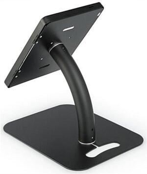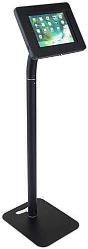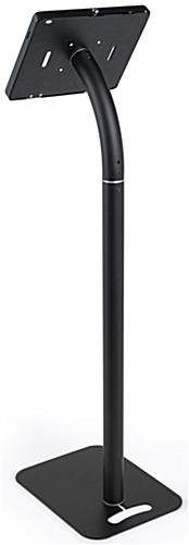 Built with security in mind, this floor to counter public tablet holder offers you the peace of mind to leave your device out for use. Steel, aluminum, and plastic with a black finish make this Android or iPad kiosk a modern fixture great for any establishment. Each adjustable public tablet holder can be used in a floorstanding or countertop position for versatility you won’t find anywhere else. Additionally, the enclosure comes with a lock and set of keys to keep tampering hands away. The adjustable iPad kiosk is also compatible with standard security locks for an added layer of protection. Each tablet holder has an enclosure that covers the home button and open jacks while still offering the ability to charge through integrated cable management.