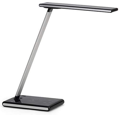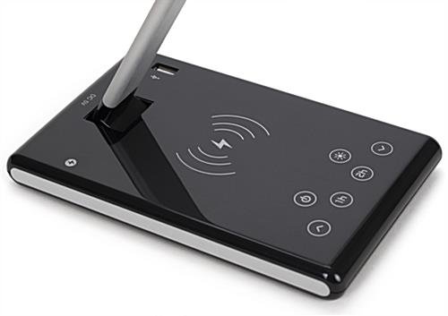 This LED desk lamp phone charger with full-color custom graphics is a modern and stylish way to provide illumination in your office or home workspace. This light is dimmable, features a USB port, a touch sensor, an adjustable rotating head, and a printing area for custom logos. The ultra-slim display includes one USB port, dimmable light option, touch sensor, adjustable head rotation, and personalization when your company logo is added. Our LED desk lamp phone charger also allows you to power your cellular device with a convenient wireless feature. Place this personalized light in libraries, trade show booths, art studios, and various other places where illumination is needed. Think of how proud your employees will be to display this personalized lighting unit on their desk or workspace while also being able to charge their wireless devices. With your company brand presented in full-color custom graphics, this LED desk lamp phone charger makes a beautiful and useful corporate gift for anyone in the office.