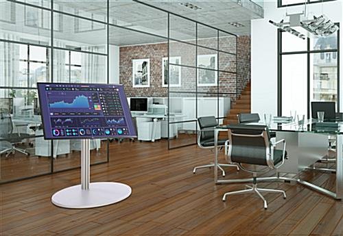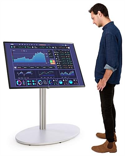 This 50″ digital advertising stand will bring ease to your company’s marketing campaigns with the built-in SuperSign software, providing you with hundreds of user-friendly templates to create compelling and modern graphics and signage. The floor standing modern kiosk has rubber feet to prevent floor scuffing and to keep the display stable in high traffic areas like lobbies, malls, hotels, and hospitals. This SuperSign 50″ digital advertising stand has a convenient tilting mechanism for angling the monitor for optimal screen viewing. Connect to external devices in seconds with Bluetooth and WiFi connectivity and pull up documents, images, and presentations in seconds with USB, HDMI, and AV ports. This modern advertising station has a sleek design that will accommodate almost all monitors, elevating the overall user experience. The LG TV has a 4K Ultra HD resolution providing you with a bright and vivid picture, helping your graphics and marketing materials stand out and grab your targeted market’s attention. This smart connectivity 50″ digital advertising stand will help you professionally display your brand by providing impactful content to your consumers and improving the way you communicate.