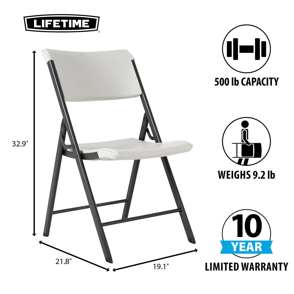 Lifetime’s Commercial Folding Chairs feature an ergonomic design that maximizes comfort while maintaining a durable build. This folding chair is lightweight, ideal for easy transport, and features a thin folding profile for compact storage. Underneath the seat is a convenient and discreet handle at a comfortable height making it easy to carry. Foot caps protect your floors and the stain-resistant finish makes the chair easy to clean and maintain. Lifetime’s Commercial Folding Chair is the ideal choice for hosting guests.
