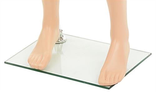 The lifelike molded male mannequin comes with a calf rod and tempered glass base for stability that is stronger and safer than fiberglass or annealed glass.