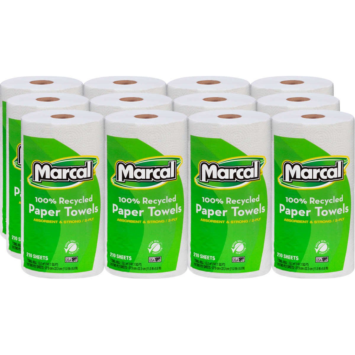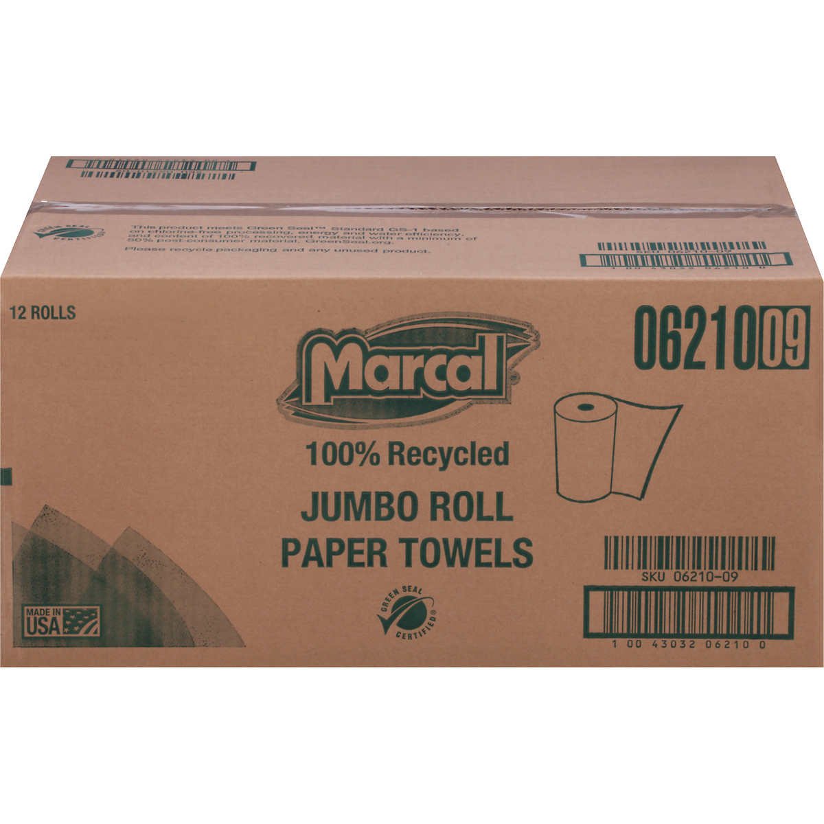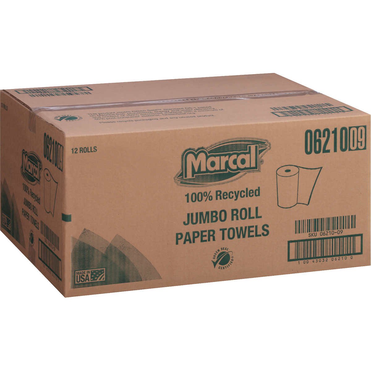 Marcal 100% Recycled 2-Ply Paper Towels, Jumbo Rolls, White, 210 Sheets, 12 ct
