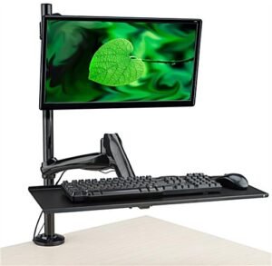 Sit Stand Monitor Arm with Independently Adjusting Tray & Bracket