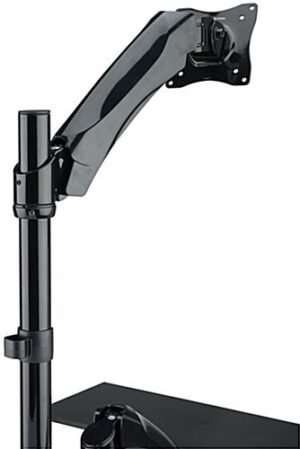 Using a pre-existing desk to offer a lower price, this sit stand monitor arm offers both health and productivity benefits. The computer workstation features a tray and bracket extension that moves independent of one another, both for height adjustment and swiveling. Supporting an LCD screen weighing up to 17.6 lbs, this heavy-duty monitor arm can be secured to a flat surface using the base either as a clamp or a grommet. The bracket tilts and rotates, ensuring easy viewing at any height while reducing neck strain. The extension fits both 75×75 & 100×100 VESA sizes for a 13”-27” LCD screen. Using a gas spring design, this workstation easily adjusts along the pole without needing tools. Use this monitor arm as an affordable and space-saving option compared to other computer desks on the market.