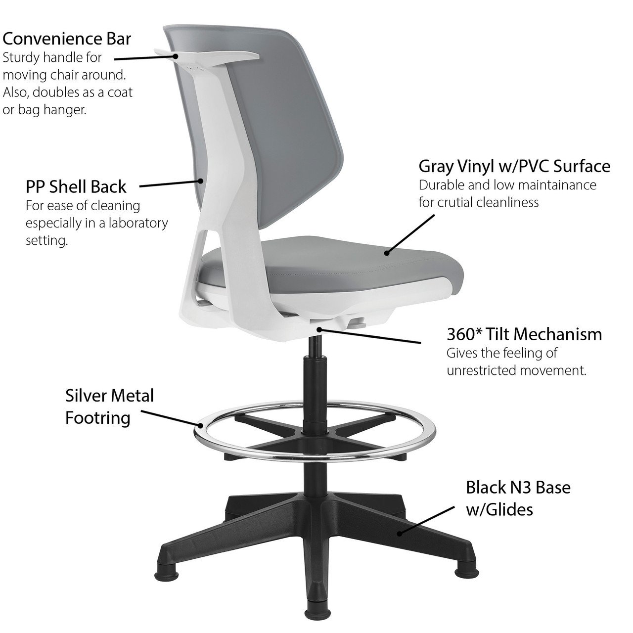 OfficeSource Alabaster Collection Armless Task Stool with Footring