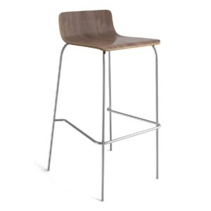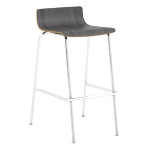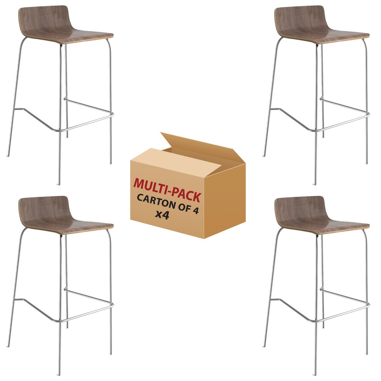 OfficeSource | Bleecker Street Collection | Cafe Height, Low Back Wood Stool with Chrome Base (Pack of 4)
