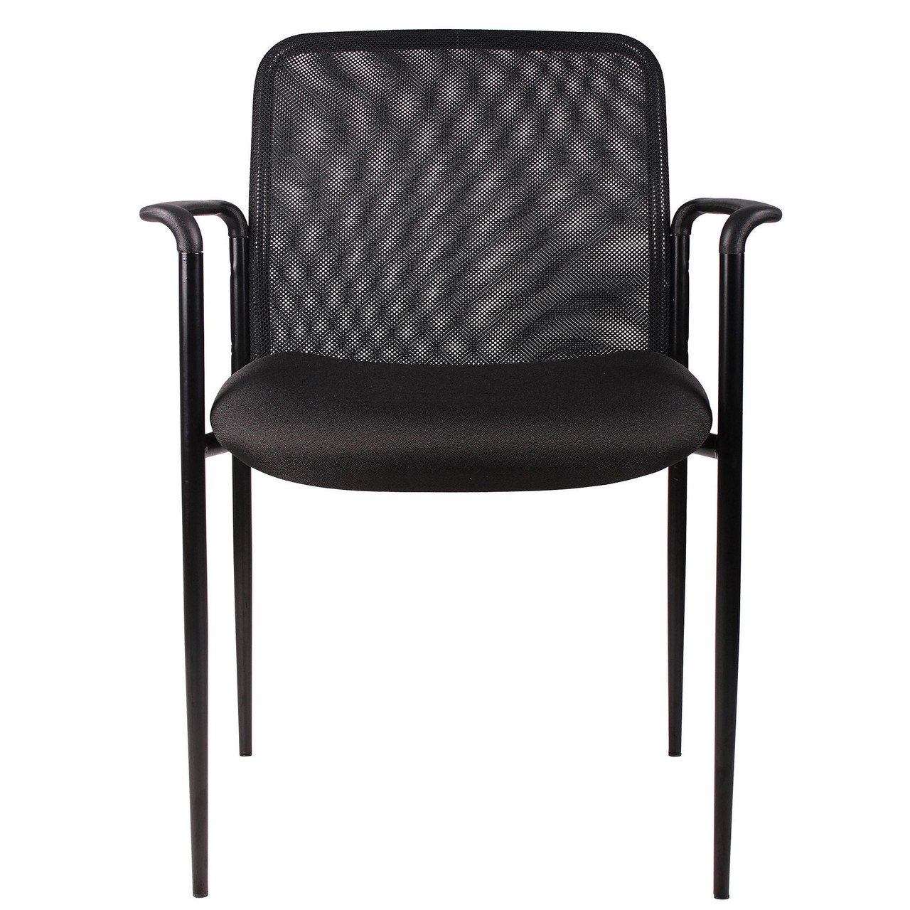 These side chairs keep you both cool and comfortable with the mesh upholstery, while also looking sleek and clean with the black fabric seat or the black vinyl seat. Choose between the side chair featuring arms or go with the armless option. Either one you choose will be a winner in regards to comfort and style. Able to be stacked four high, these chairs are also easily stored away until desired use.