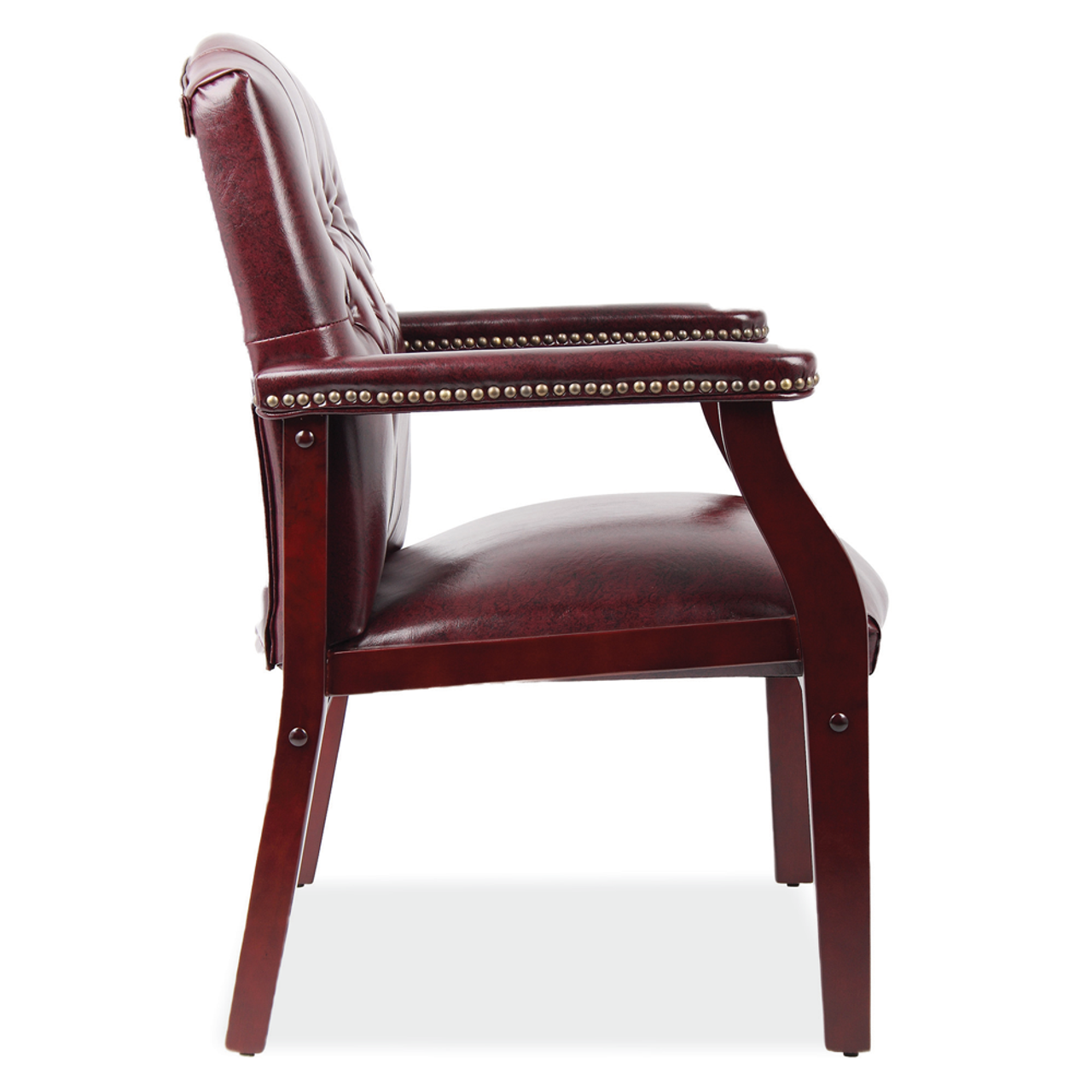 If there is anything that entices a potential customer prior to your pitch, it is your office furniture. This is why your furniture should be exceptional, like this guest chair from the Lancaster Collection by OfficeSource. This guest chair is especially designed to offer sheer comfort, while maintaining the most professional aesthetics. It is simply the best guest chair for your office. This guest chair comes in an eye-catching mahogany finish which makes it even more enticing. The highly comfortable oxblood vinyl upholstery blends perfectly with the wooden frame.