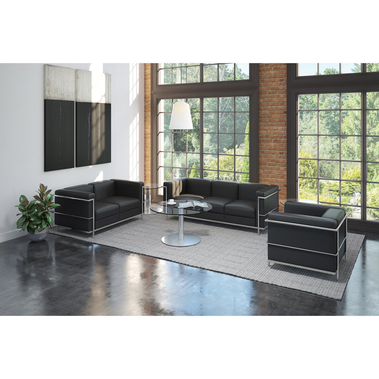 OfficeSource Madison Collection Loveseat with Chrome Exposed Frame