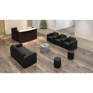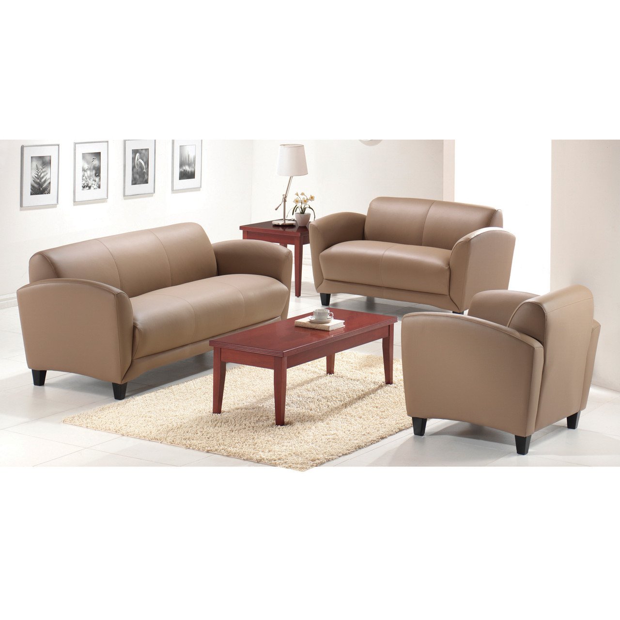 Crafted with contemporary styling to add a fresh touch to any home or office, this upholstered sofa offers coziness and style all in one. This sofa features top grain leather seating surfaces in your choice of two color options, with heavy duty spring construction for superior comfort. Sleek arms and a plush back provide added comfort, while the entire sofa is lifted upon wooden legs. Luxurious and stylish, this Manhattan Collection sofa is a wonderful choice for any lounge area.
