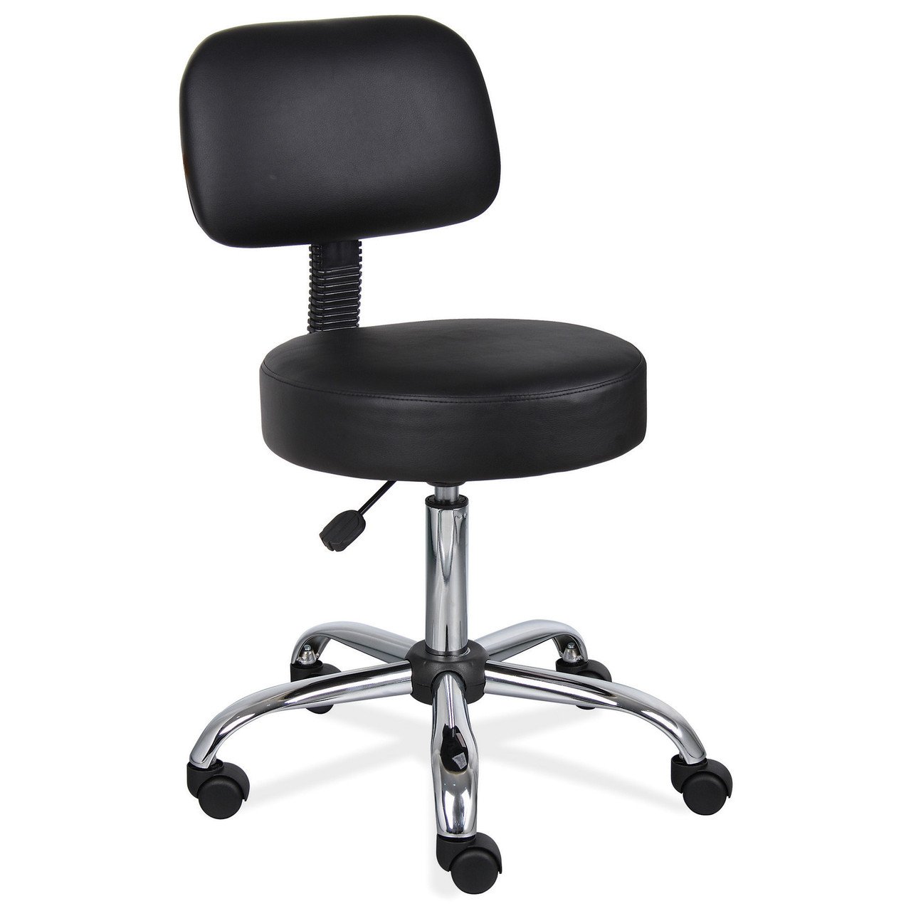 This exquisite medical stool is designed for those professionals spending long hours at work. Investing in this office seating solution will decrease your chance of having back pains from spending long hours at work. This medical stool from OfficeSource comes with a backrest for increased comfort, and the black vinyl upholstery and chrome frame combination makes this stool quite aesthetically pleasing. The chrome base of this medical stool seamlessly connects to the vinyl upholstery of the stool. The casters attached to the base of this office furniture promotes easier mobility at your work station.